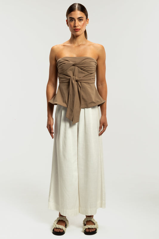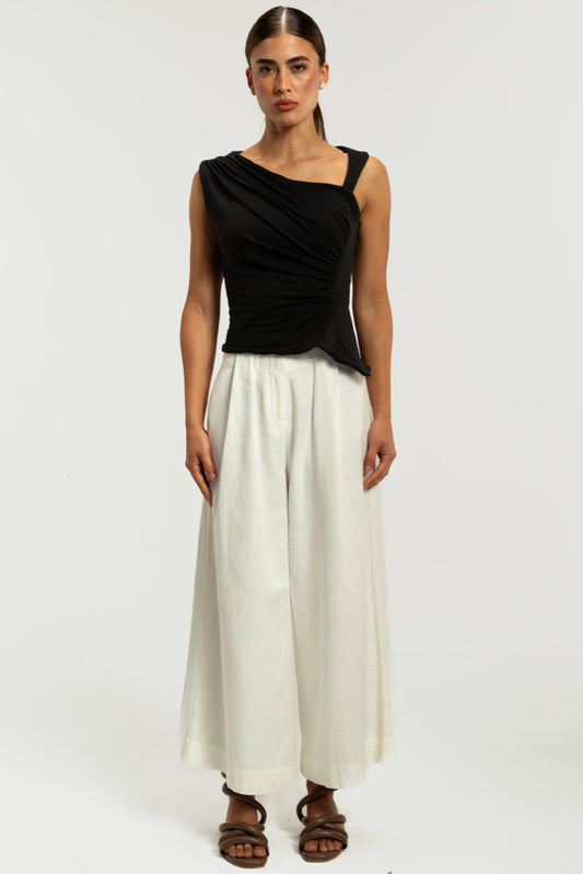 Arena Pants, son la armonía perfecta entre comodidad y estilo. Su tiro alto abraza la cintura con naturalidad, mientras la tela ligera y fresca acompaña cada movimiento sin peso ni esfuerzo. La silueta de pierna ancha fluye con gracia, y los pliegues frontales aportan un toque de sofisticación sutil. Una prenda versátil que se adapta tanto a tops ajustados como a camisas sueltas, ideal para cualquier momento del día.